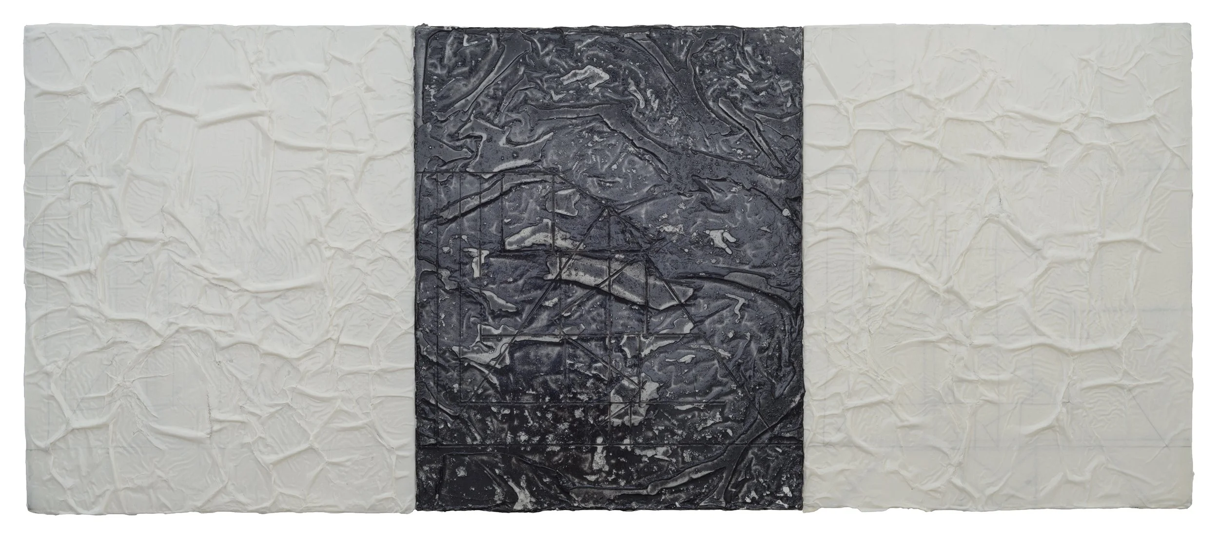 Bone Memory Triptych, 2015-16, acrylic, ink, and Duralar on canvas mounted on panels, 96x40" (n/a)